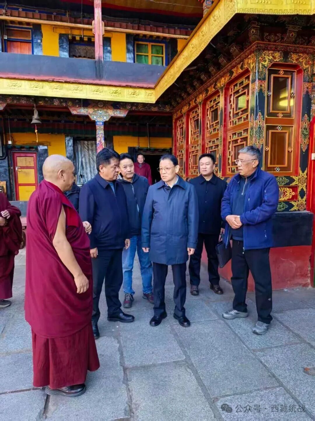 近日,自治区党委常委、统战部部长斯朗尼玛前往拉萨市大昭寺、木如寺、曲桑寺、下密院、功德林寺、帕崩岗、扎基寺、策门林寺、丹杰林寺、次角林等寺庙,宣讲党的二十届四中全会精神,调研寺庙管理和文物保护等工作。