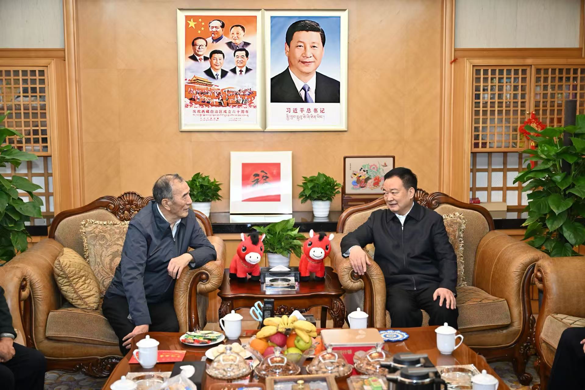春节、藏历新年即将到来之际,自治区党委书记王君正分别在成都、拉萨看望慰问了全国政协副主席、自治区政协主席帕巴拉·格列朗杰,十二届全国人大常委会副委员长向巴平措,十三届全国人大常委会副委员长白玛赤林,列确、巴桑等自治区老领导老同志,感谢他们为西藏改革发展稳定打下的坚实基础、作出的重要贡献,祝愿他们健康长寿、阖家幸福、万事如意。