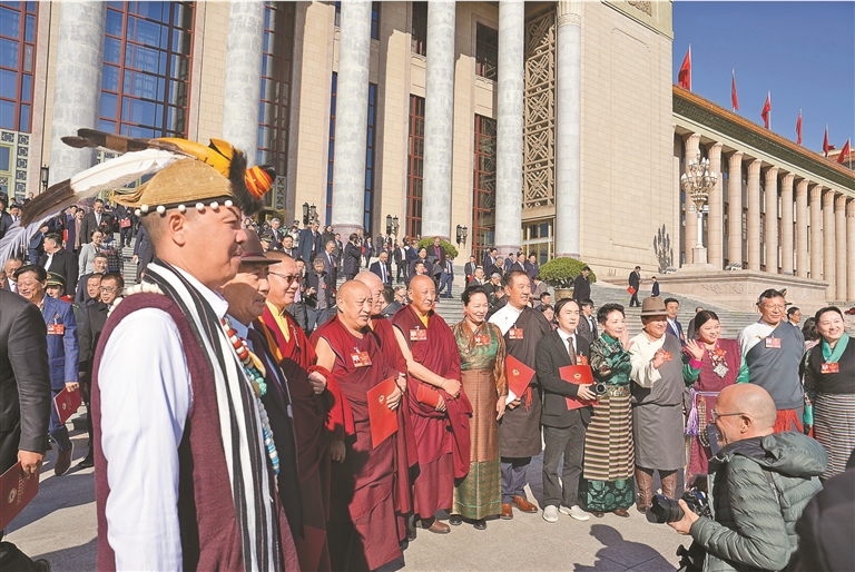 图为住藏全国政协委员在人民大会堂前合影。本报记者 陶玥 摄