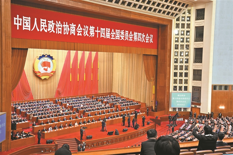 图为3月11日上午,全国政协十四届四次会议在北京人民大会堂闭幕。这是闭幕会现场。本报记者 陶玥 摄