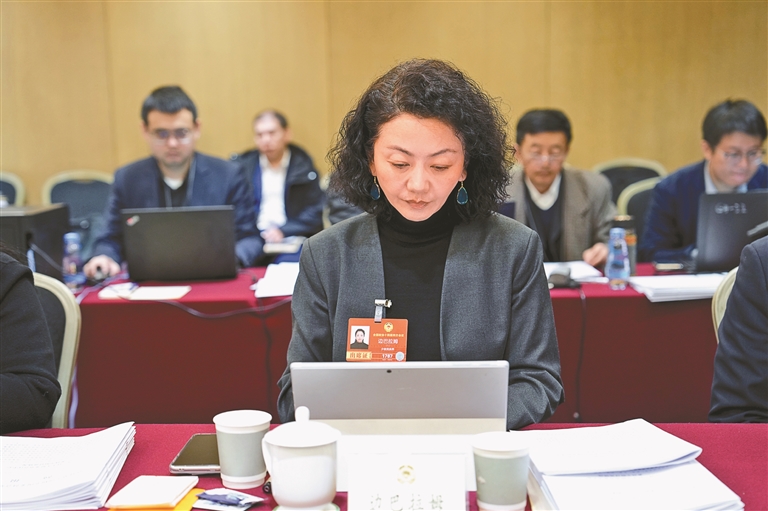 图为3月7日,住藏全国政协委员边巴拉姆参加所在界别小组讨论。本报记者 旦增旺姆 摄