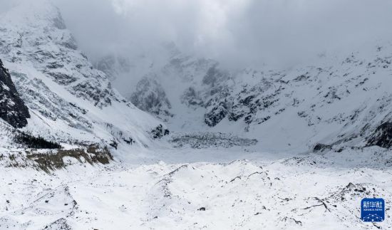 大雪覆盖的白普隆沟(3月21日摄,无人机照片)。新华社记者 洛卓嘉措 摄