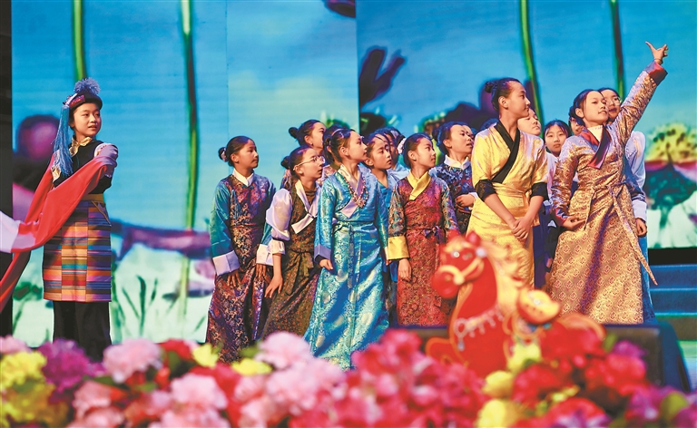 3月27日,拉萨市第一小学“铭记历史颂党恩,奋进新程展师风”庆祝“3·28”西藏百万农奴解放纪念日师生文艺晚会在自治区群艺馆上演。图为文艺晚会现场。记者 格桑伦珠 康洁白姆 晋巴次成 巴桑顿珠 摄影报道