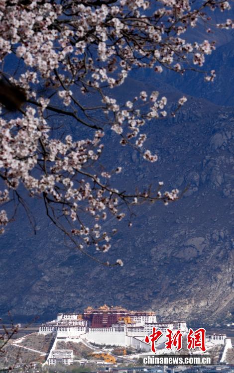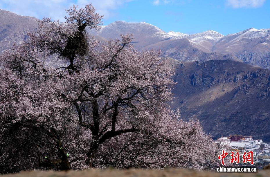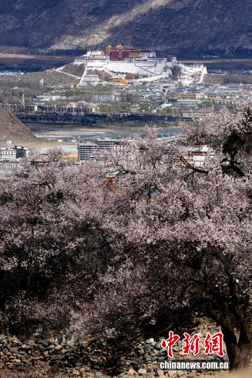 4月1日,西藏拉萨慈觉林村盛开的桃花与布达拉宫交相辉映。西藏拉萨河南岸的慈觉林村古桃树迎来盛花期,与布达拉宫构成春日美丽画卷。
