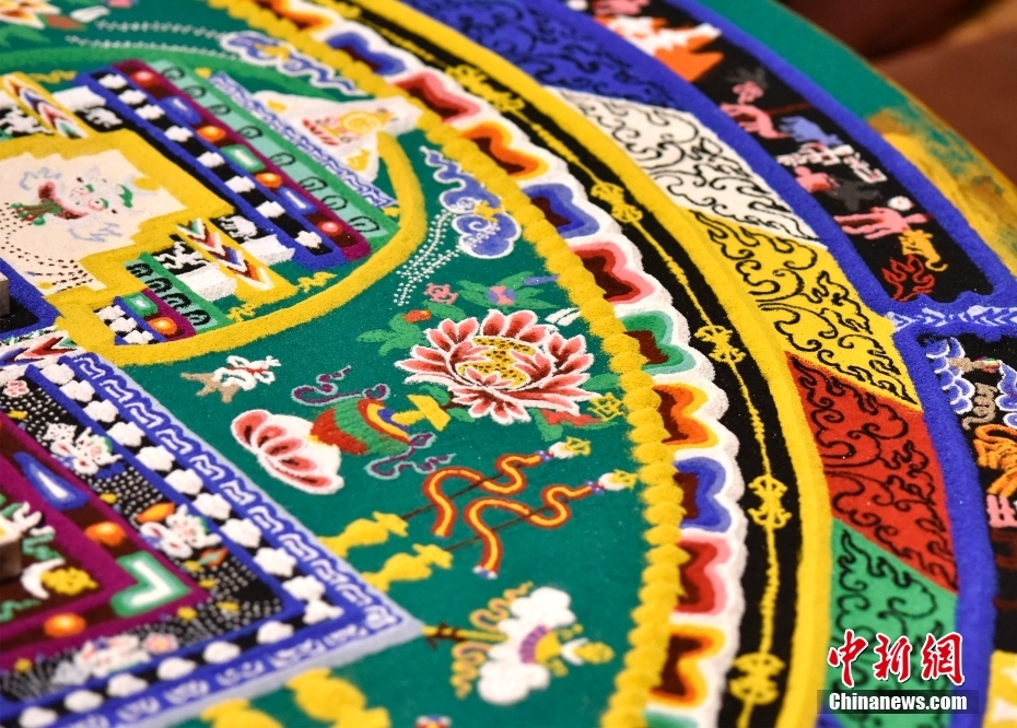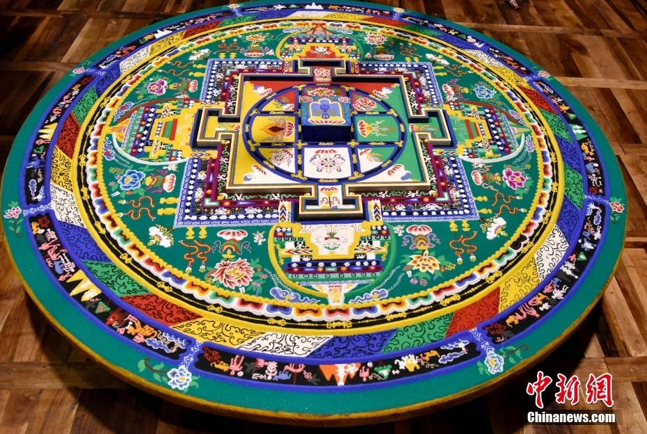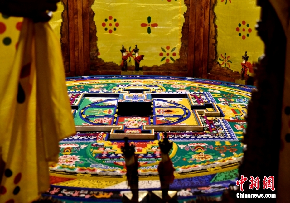 图为功德林寺完成绘制沙画坛城。 中新社发 李林 摄
