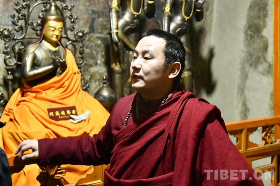 云旦加措介绍寺内情况和文物回家故事 摄影:赵振宇