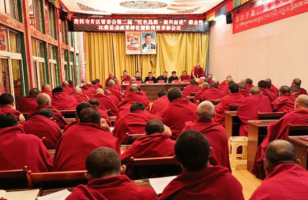 为巩固活动成果,激发僧众内生动力,在县委统战部的指导下,孜托寺片区召开活动成果转化暨阶段性表彰会。会议集中展示村级预赛优秀成果,通过僧人现场宣讲、演讲,陈列书法获奖作品,观看优秀短视频等形式,全方位呈现活动成效。对村级比赛中表现优异的18名僧人授予优胜者称号,为6名僧人颁发鼓励奖,发放奖金10800元,以物质与精神双重激励树立先进典型,引导受表彰僧人发挥模范带头作用,带动全体僧众以先进为榜样,积极投身活动开展。